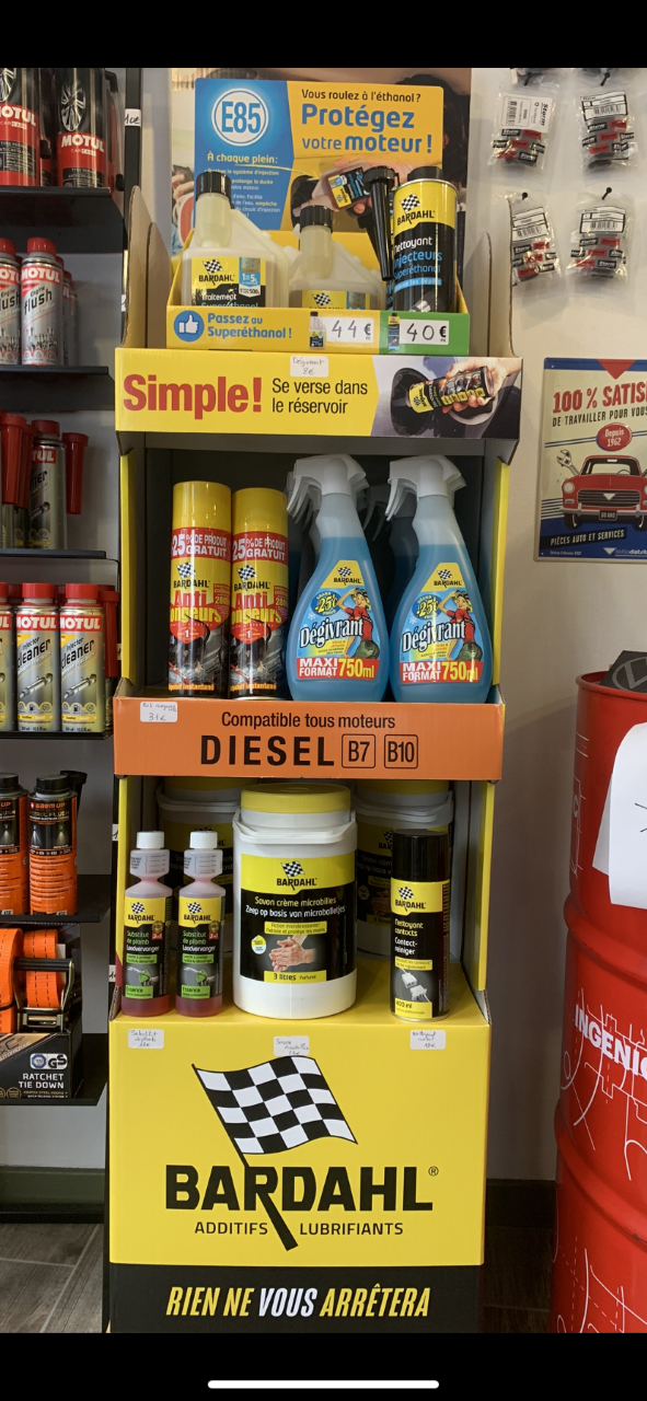Voici la gamme de produits Bardahl proposée dans votre magasin « Le comptoir de l’Automobile » à Aubigny-en-Artois.